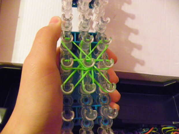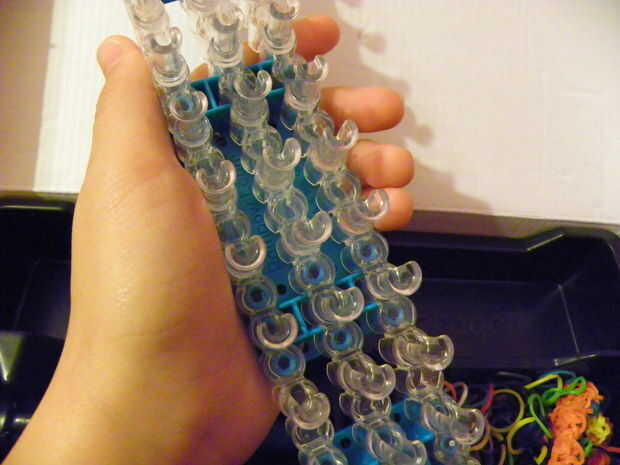 Paso 1: fuentes de Necesita un kit de inicio para el telar del arco iris y algunas elásticas.Paso 2: Colocar las bandas Iniciar colocando un color de borde y no empezar a poner encima de todo lo que tienes que hacer en los patrones.Paso 3: Colocar la