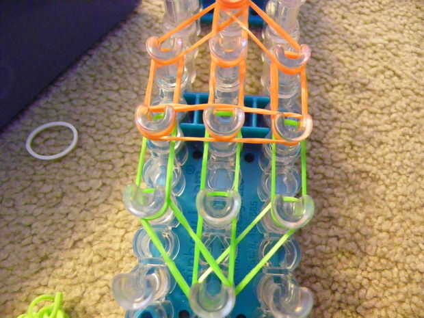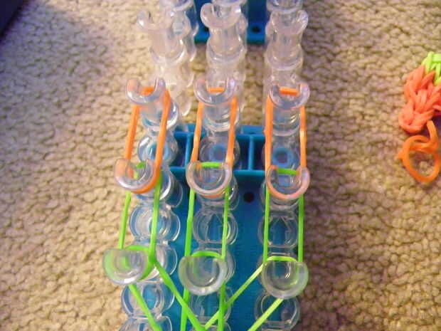 Paso 1: fuentes de Necesita un kit de inicio para el telar del arco iris y algunas elásticas.Paso 2: Colocar las bandas Iniciar colocando un color de borde y no empezar a poner encima de todo lo que tienes que hacer en los patrones.Paso 3: Colocar la