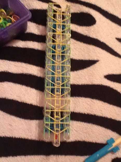 Paso 1: fuentes de Necesita un kit de inicio para el telar del arco iris y algunas elásticas.Paso 2: Colocar las bandas Iniciar colocando un color de borde y no empezar a poner encima de todo lo que tienes que hacer en los patrones.Paso 3: Colocar la
