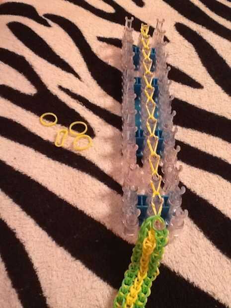 Paso 1: fuentes de Necesita un kit de inicio para el telar del arco iris y algunas elásticas.Paso 2: Colocar las bandas Iniciar colocando un color de borde y no empezar a poner encima de todo lo que tienes que hacer en los patrones.Paso 3: Colocar la