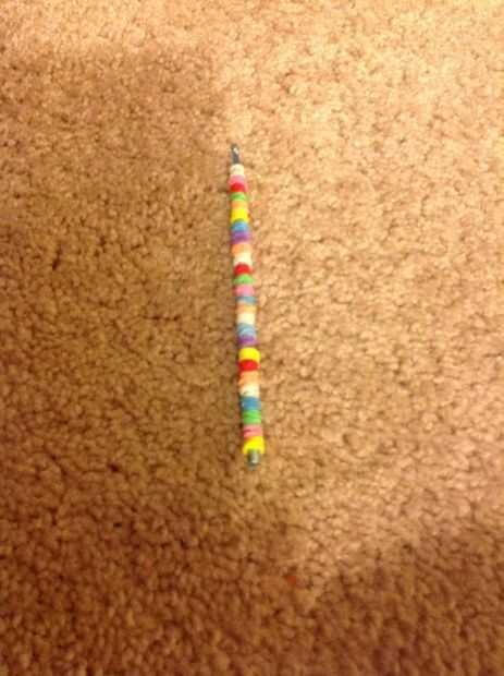 esto es un braclet muy fácil y divertido para hacer. Esperamos que disfrutes!Paso 1: materiales Se necesita: un telar, gancho, elásticos y un clip de C.Paso 2: Colocar los elásticos Primero escoger tres colores y a la clavija central. Sacó su color e