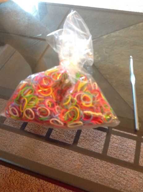 Necesitamos cualquier color gomas un gancho de ganchillo sólo un gancho de plástico es demasiado pequeño y en forma de gancho