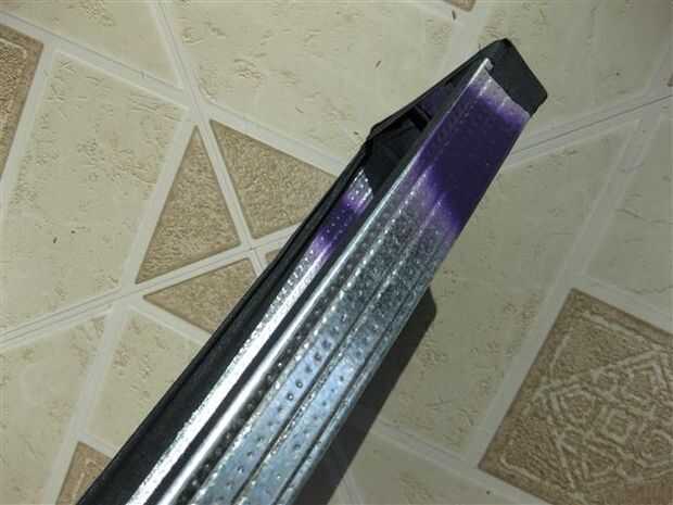 Quería evitar los bordes filosos, así que pensé de la cinta. Invierno está amainando, tuve poco palo de hockey de cinta a utilizar. Corrí la cinta del hockey en todos los bordes externos. Mecánicamente no cerrar los extremos con tornillos o remaches, usé sólo la cinta.