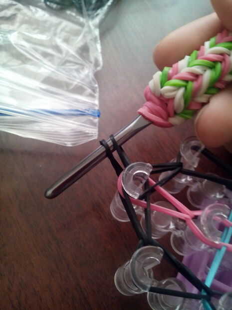 esto es una pulsera linda me encantaPaso 1: Suministros usted necesitará 1. telar de arco iris establece como se muestra en la foto2. ladrón bandas tantos colores como quieras3. el gancho de ganchillo o gancho de telar del arco iris4. un clip de c o