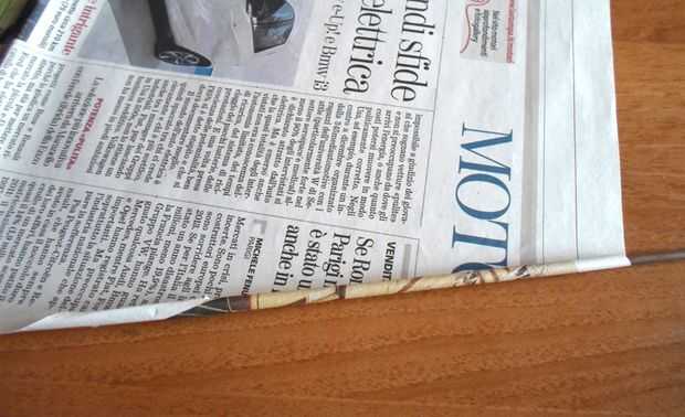 Ahora tomar una página de un periódico y a partir de uno de los lados más cortos, rodar tan estrecha como sea posible hasta alcanzar el lado opuesto y asegure con pegamento. Usé una aguja de coser grande como una ayuda para comenzar a rodar la página.