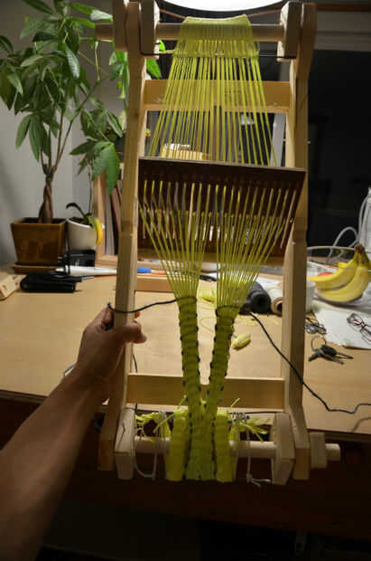 Luz brilla a través de los hilos de urdimbre (amarillo).