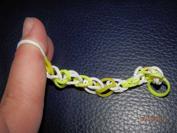 esto es algo que también me inventéEspero que les guste!!Paso 1: Se necesita Necesita una fila de un telar del arco iris, 3 bandas, un gancho y un clip de sPaso 2: Colocar las bandas Lugar sus dos primeras bandas como se muestra y hacer una banda de