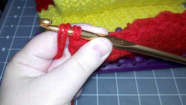 Telar teje bufanda de Gryffindor (10 / 13 paso)