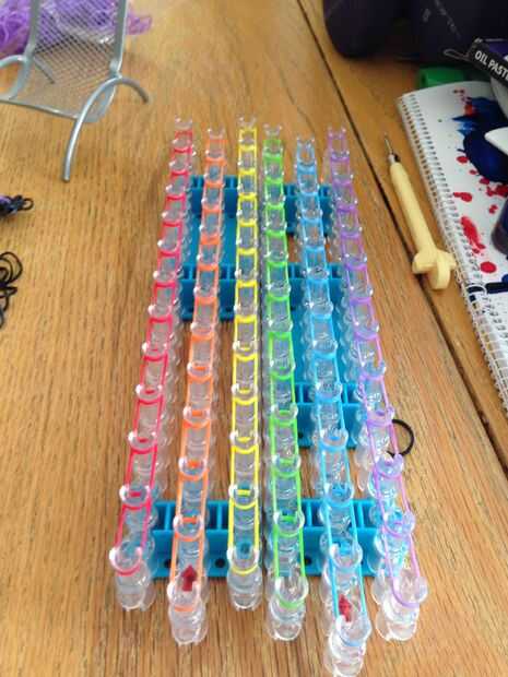 primera ' pones el zigzag de bandas.Paso 1: Paso dos. Luego ' seguir haciendo eso hasta llegar a ser tan grande quieres que sea.Paso 2: Paso tres. Siguiente ' voltee el telar y tomar su gancho.Paso 3: Paso 4. Luego ' tomar su gancho y yo tomar mi ban