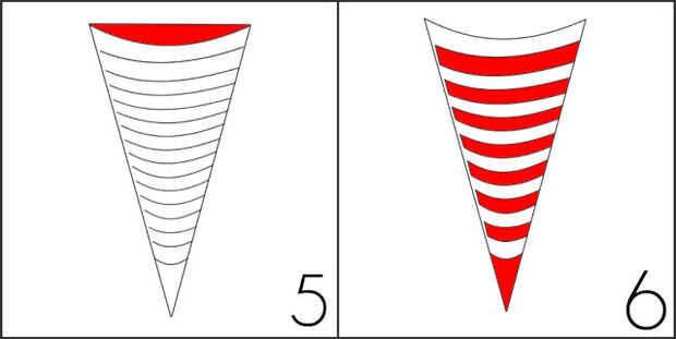 6. corte cada tira del otro visto en rojo y cortar la punta.