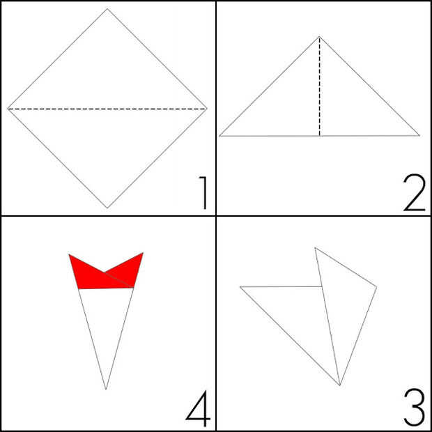 1. dobla el papel, por la mitad diagonalmente. Arruga bien.
