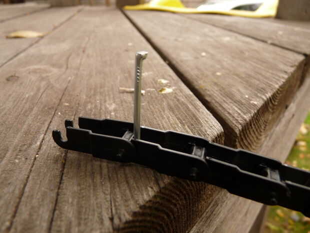 Encontrar dos objetos que son poco más que la longitud de su cadena. Martillo en un clavo y colocar la cadena en él como tal.