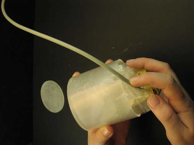 Cuando esto esté listo, tome su circuito de exhibición y envolver en un plástico reciclado (esto también ayuda a ocultar la placa pc y difundir la luz de los LEDs). Inserte el tablero envuelto plástico en el cilindro y fije la parte inferior.