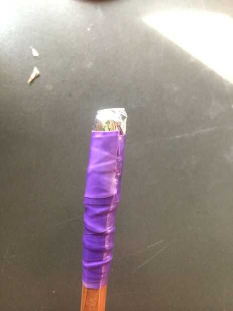Tire de la lámina firmemente sobre el lápiz y cinta en.