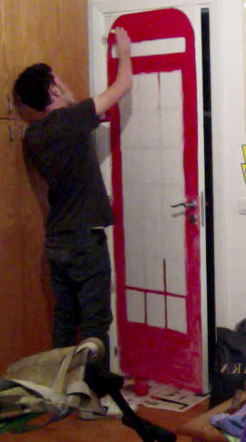 Comenzar con la pintura roja. permanecer dentro de las líneas, puedes incluso dejar algún espacio en blanco antes de la línea de lápiz que será cubierto por el marcador permanente negro. Endecha por lo menos dos capas de rojo.