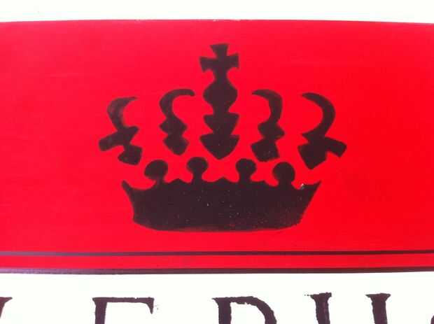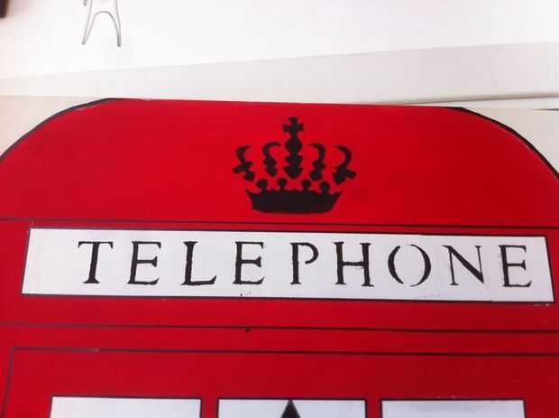 Para el texto elegí la tipografía Times New Roman que es similar a la fuente de las cabinas de teléfono británicas. El procedimiento es el mismo: imprimir y cortar. Una vez que haya terminado con las plantillas, pegarlas en la puerta con cinta de enmascarar y proteger el espacio circundante con periódicos. Es mejor usar pintura en aerosol, pero también puede lograr grandes resultados con un pincel y un poco cuidado por último con la ayuda de la regla, trace las líneas negras con el marcador como se muestra en la imagen.