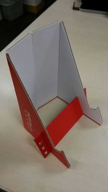 Se trata de un soporte de cartón barato que puede ser colocado en el salpicadero de tu coche con algun pegamento o Velcro o una mesita de noche para tu habitación o incluso un dormitorio de collage. Puede ser hecho fuera de una caja de pizza vacía, c
