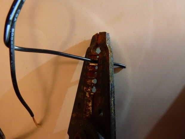 3.) siguiente, pelar el cable aparte y tira de los extremos de los dos cables. Para algunos cordones puede ser una sola pieza del cable que contiene dos cables dentro. Para este tipo de adaptador, simplemente tira el alambre exterior para exponer los alambres internos y luego Pele los extremos de los dos alambres.