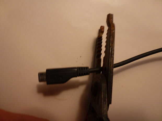 2.) después de seleccionar el cargador adecuado para su experimento, cortar el extremo del cable que se enchufa el teléfono.