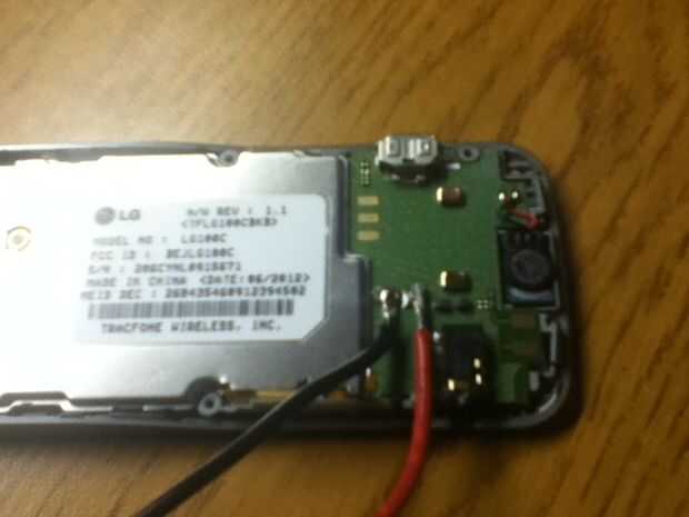 Obviamente más diversión parte del proyecto, modificar el celular! lo que quiere es básicamente extender los cables para el motor del vibrador del teléfono. Para ello, simplemente desmontar el teléfono y encontrar dónde están los contactos del vibrador. Entonces todo lo que queda por hacer es el empalme de la soldadura en algunos cables y cortar un agujero en la parte posterior el caso corra los cables a través. Después de volver a montar, listo con la modificación! apuesto que no sabía que era tan fácil ¿EH?