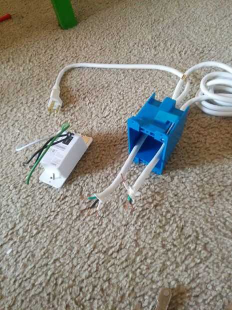 Al realizar el corte que se encuentra que la extensión es un manguito de goma mordazmente alrededor de 3 alambres. Estos cables deben ser verdes, negro y blanco. Necesitarás para el aislamiento de cada uno de estos cables para que se exponga tal vez la mitad de una pulgada de metal. Ahora se trata de cómo un cable de extensión debe conectarse. El verde es tierra - la punta redondeada grande en el cable. El blanco es neutro - uno de los dos puntas. Negro está caliente - otro de los dos dientes. Esto coincidirá con el código de colores de los cables en la parte posterior de la WeMo.