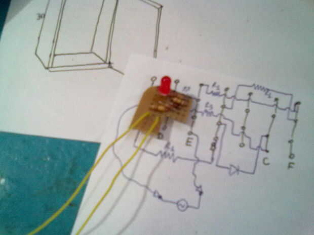 Hizo una pequeña tabla para ensamblar los componentes juntos, a partir de chatarra perforado protoboard.