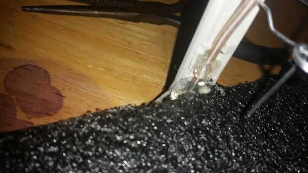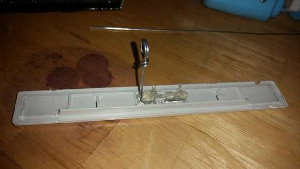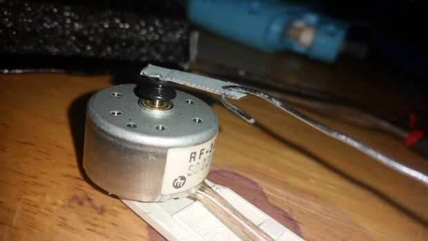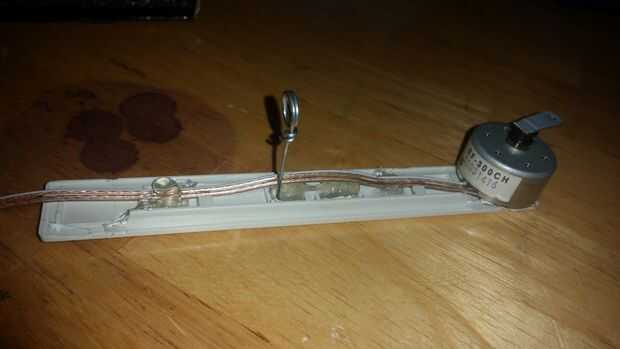 Ahora nos pegue todos juntos. Caliente los mocos calientes y empezar pegando el bucle de la guía que hicimos en el centro de la puerta que tomamos de la unidad de CD-ROM. Podemos pegar el motor a un extremo de la puerta, y el otro extremo va pegado a la base. Puede que necesite tomar un cuchillo de la manía y recortar algunos plástico lejos para conseguir todo lo necesario para quedar completamente plano. Alimentar el clip de la aguja a través del orificio de guía y al final de 90 grados a través del brazo que une el motor de la alimentación. Doblar el clip de papel alrededor del brazo, dejando un espacio para permitir que gire (ver foto). Ejecute el cable del motor por debajo de la espuma hacia fuera al frente de la máquina y pegar la espuma en lugar. Ahora con el ensamble casi completo, su teléfono en el relleno y ajuste la aguja en su punto más bajo es 1/4 de pulgada por encima de la pantalla de su teléfono. El clip de papel se daño la pantalla del teléfono y no debe extenderse lo suficiente para realmente tocarlo.