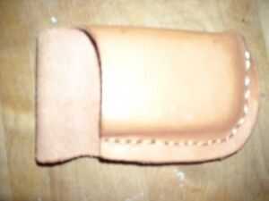 Para hacer esta caja del teléfono celular, se necesita papel para un patrón, agujas, hilo encerado o tendón artificial, un cuchillo u otro instrumento de corte, alguna forma de sacador o perforar el cuero, cuero y pegamento. Se trata de una pieza envolvente caja del teléfono celular, de una sola pieza de cuero. La parte superior se dobla hacia atrás para hacer el lazo de correa y la derecha se plegará sobre el teléfono celular para hacer la bolsa.