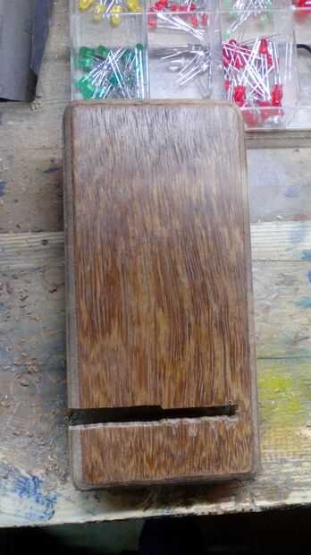 Las dos piezas a unir con un par de ranuras. La ranuras medidas 1,5 cm de la parte inferior, cortando a la mitad a lo ancho. Acabo de hacer unos pases con la sierra para hacer las ranuras. La ranura de la madera contrachapada es más ancha porque voy a diapositiva un LED en él. Perforé 2 orificios en el plexyglas para hay un LED en él.