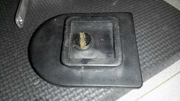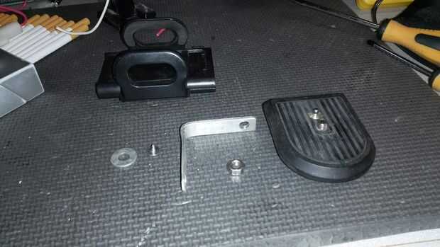 Entonces encontré lo que yo llamo un arandela tornillo en el otro extremo del Monte. Tenía que haber una arandela instalada entre el titular del celular y el montaje de 90 grados para conseguir apretado lo suficiente que no sería sólo girar sobre. Usé una lavadora que fue 1,87 mm de espesor. Esto fue sólo una arandela genérica.