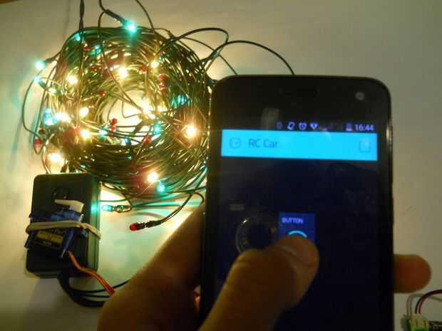Mi hijo quería ser capaz de convertir el árbol de Navidad encendido y apagado con su teléfono. Cavado alrededor en el laboratorio secreto de montaña (también conocido como el sótano) y vino para arriba con el siguiente proyecto, que utiliza un Arduin