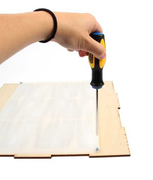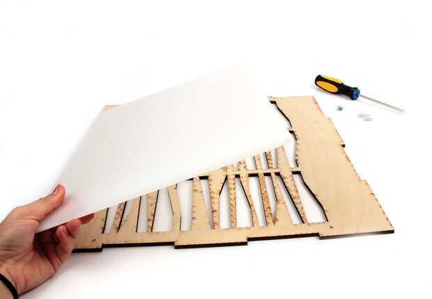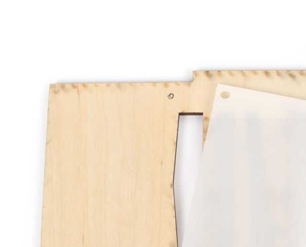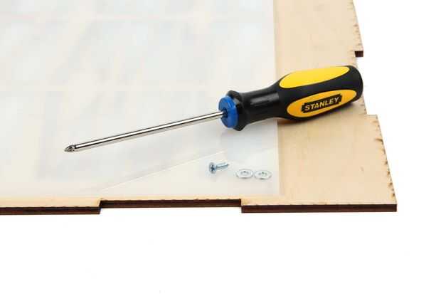 Atornille el acrílico en la parte superior de la caja utilizando los tornillos para madera y dos arandelas (para evitar que los tornillos de todo el camino de la madera).