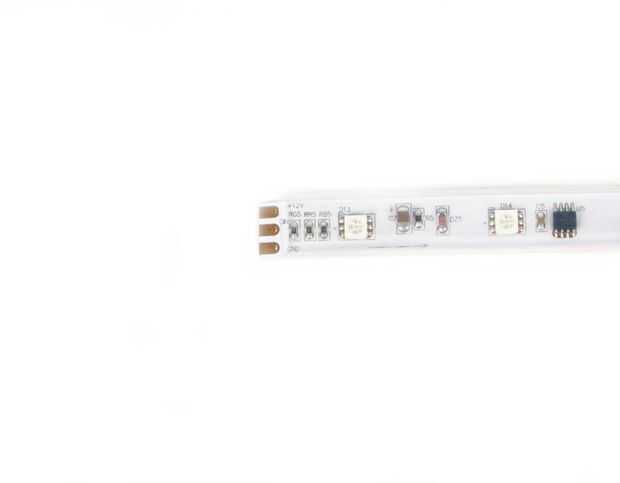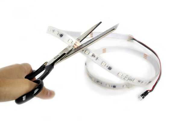Nota donde se sueldan los cables de la tira original. Cada tira debe tener los cables soldados al mismo lado. La tira debe tener flechas en él para ayudar a determinar la dirección correcta.
