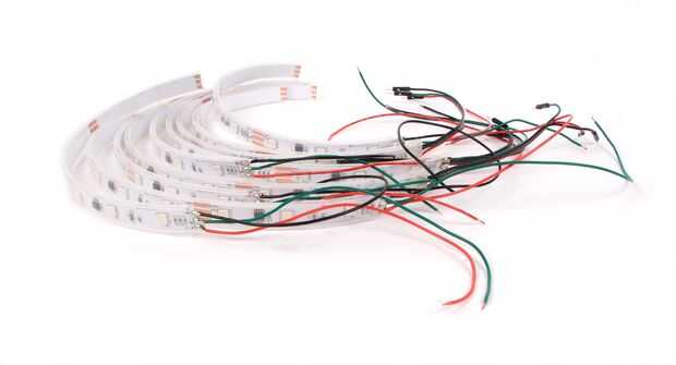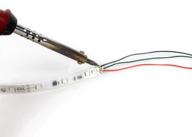 Para las tiras que no tiene cables ya conectados, corte la cubierta plástica que cubre las áreas planas de cobre y soldar los cables a ellos. Debe soldar un alambre rojo para Vin, un cable negro de tierra y un cable verde para el pin 12.