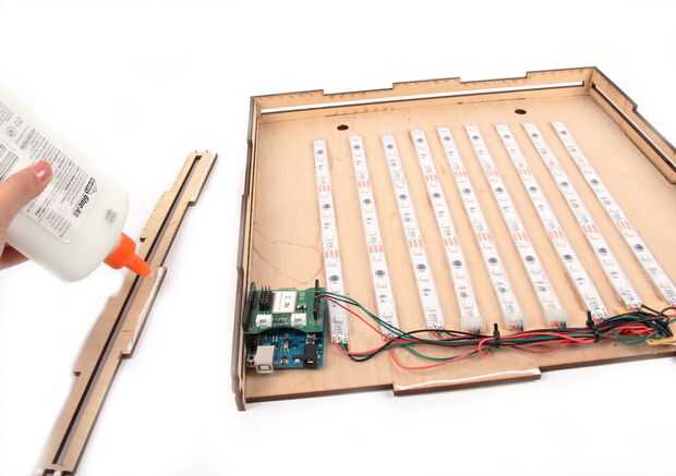 El cable negro de cada LED tiras a juntos en el tablero de PC y conectar un cable adicional para ir a tierra en el Arduino.