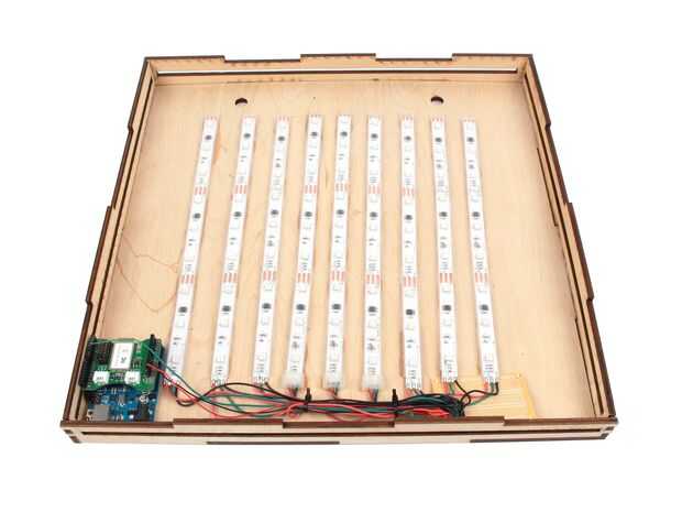 La soldadura de los cables rojos de las tiras de LED a la tarjeta de PC. Deben todos conectarse a un cable rojo que debe conectarse con Vin en el Arduino.
