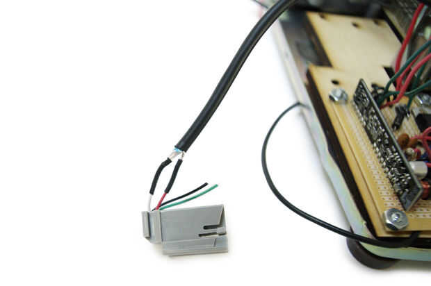 Conecte el cable de señal apantallado por el altavoz con el cable rojo en la toma. Conecte el altavoz blindar al blanco.