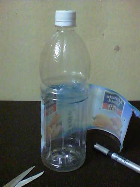 Apenas a tres minutos y 0$ personalizar tus regalos e ir verde con la madre naturaleza. Uso las botellas de PET y hacer frescos cajas para los regalos o lo que quieras.Cosas.Botella del animal doméstico.Tijeras.Papel de regalo o fotos.Espero te guste