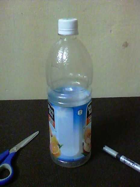 Crear tu propio joyero pequeño de una botella de refresco reciclados!Paso 1:Enjuagar y secar la botella del animal domésticoPaso 2:Marque una línea sobre __ pulgadas desde la parte inferior, o simplemente donde la curvatura de la botella comienza a c