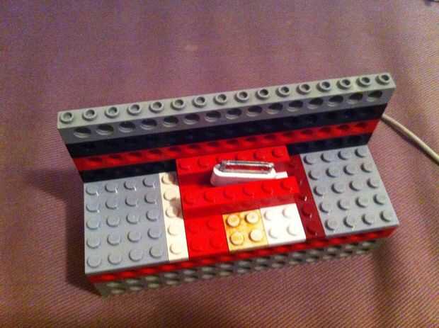 un IHome base de diseño para sostener el teléfono mientras su carga. Puede llevar a cabo las tabletas, pero usted puede desde la base un poco más amplia.Paso 1: Hacer el bloque de carga -necesitará de Lego y un cable de cargador USB para su dispositi