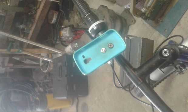Después de casi caer mi telefono muchas veces durante el recorrido decidí hacer un manillar de montaje para ella. Si quiero que al presionar el botón "ignorar" que hace el teléfono fácilmente accesible en lugar de intentar pescar fuera de mi bol