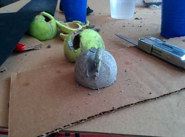 Hacer algunos cortes a la pelota de tenis desde la base hacia el centro de la bola. Hacer unos cortes aquí debe permitir el soporte para apenas salga la pelota de tenis. Como se puede ver, habrá mucho de flash. No te asustes. La mayor parte de él se desprenderá con sólo los dedos.