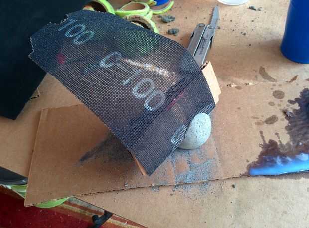 Utilizando una pantalla de lijado aquí ayuda. El polvo de concreto creado mi lijado sólo cae a través de la pantalla, lo que por un tiempo más fácil todo. Dar la base de un buen lijado. Pone la pantalla en algo plano y mueva el soporte en él en círculos. No sacar una tonelada de material, pero le ayudará a asegurar que la base es plana.