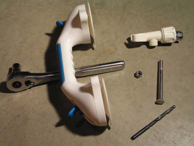 -un largo perno y tuerca (me gustaría aportar una longitud exacta, pero depende del modelo de barra de agarrar)