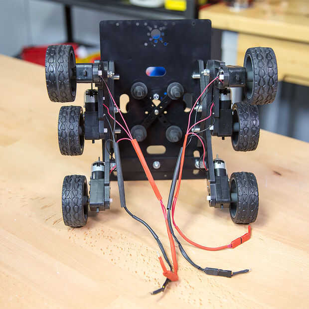 Para mantener las cosas limpias que primero ingresé los cables rojos de los motores izquierdos en un calor encogen "manga"... luego hizo lo mismo para el negro de ese lado. Por supuesto luego repetí al otro lado.