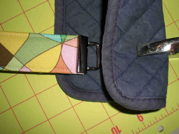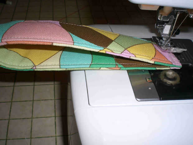 El fob del doblez por la mitad y coser cerrado en la parte superior. Esto permitirá conectar el hardware más fácil.