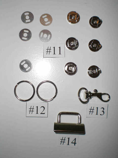 3 tres cierres magnéticos tamaño 14 mm (2 para cinturón de bolso) y un 1 para el caso correa. Estos son más pequeños que los cierres de bolso típico 18mm - #11