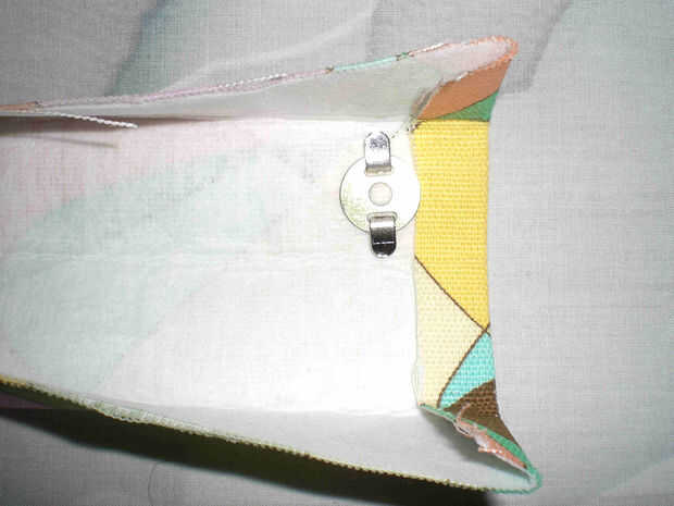 Consejo: Para reforzar a la tela bajo el cierre magnético, añadir una pieza redonda de la cinta fusible dobladillo como calor â €˜n hierro Bond adhesivo.