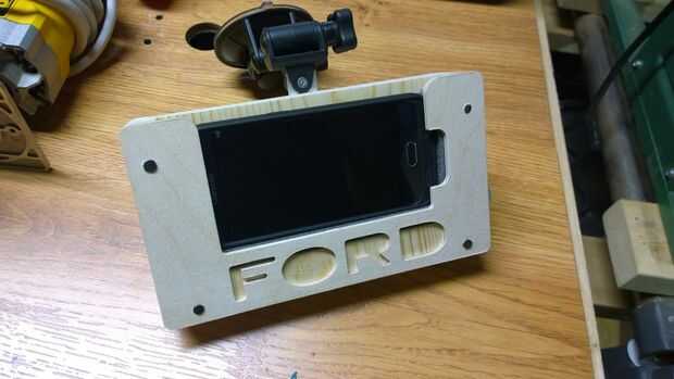La montura de ventosa fue comprada en eBay. Es un montaje Panavised y cuesta unos $13. La madera era estantería de pino sólo barato y algunos desechos madera contrachapada fina para la cubierta. El material amortiguador en el Monte que rodea el teléfono es aislamiento ventana barato.