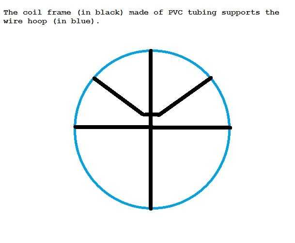 Un marco de tubo de PVC mantendrá las bobinas. Para hacer un marco, corte un pedazo corto de tubería (aproximadamente 2 pulgadas de largo) y unir dos de las articulaciones de la "X" juntos. Corte longitudes de tubería de 1/2 para las articulaciones del lado de la "X" menor a una longitud de 4 pies total. (Asegúrese de que para la porción del tubo que se encaja en las articulaciones). Añadir una tercera pieza de tubería de 1/2 pulgada a la articulación inferior de la parte inferior "X" y un otro pedazo a la junta superior de la parte superior "X". Esto debe total también de 4 pies de largo (ver imagen).